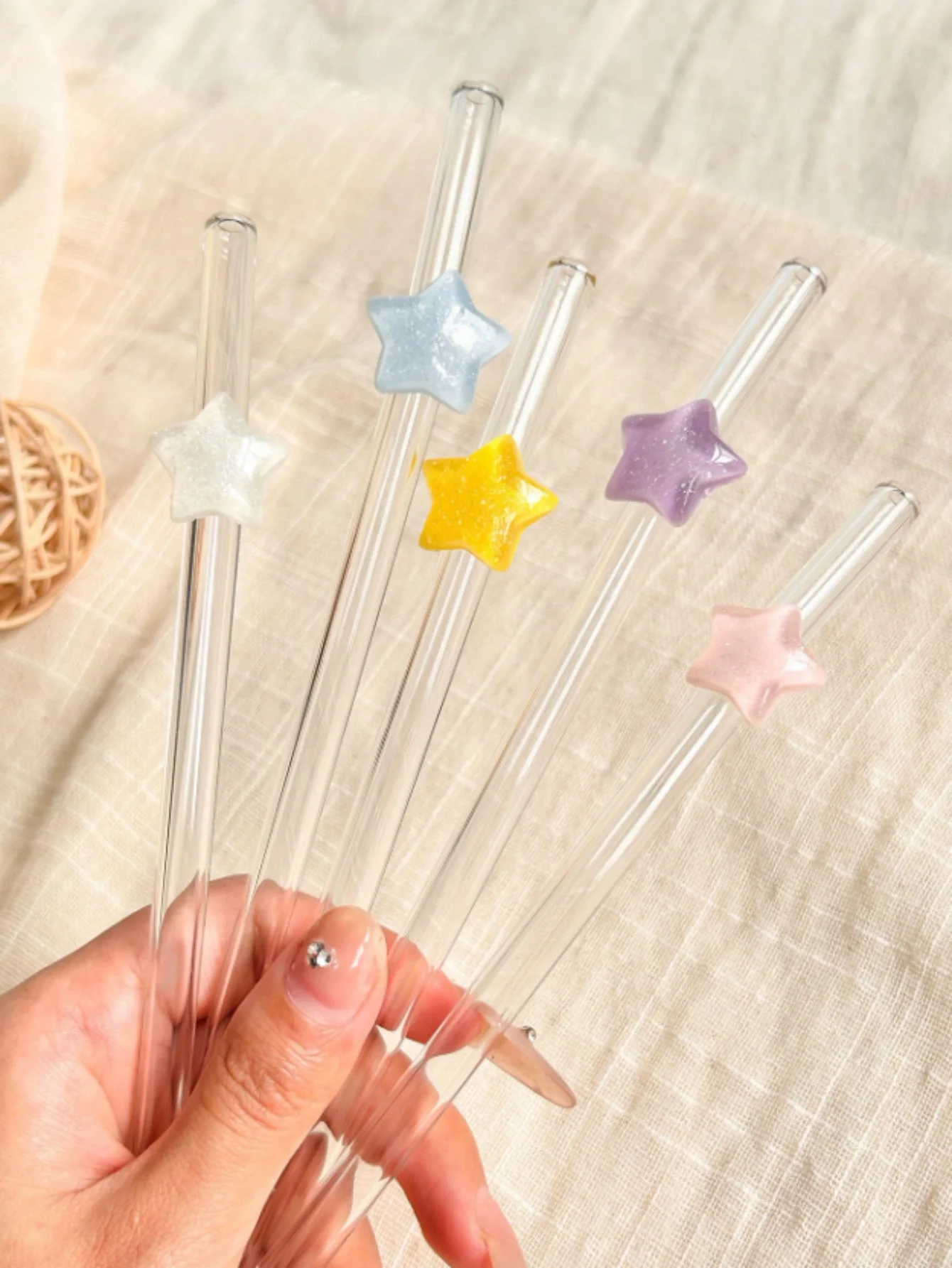 1/6 Stück sternenklare Party-Glasstrohhalm, handgefertigter, biegsamer Strohhalm in Pentagramm-Form, perfekt für Getränke, Festival-Feiertagsgeschenk