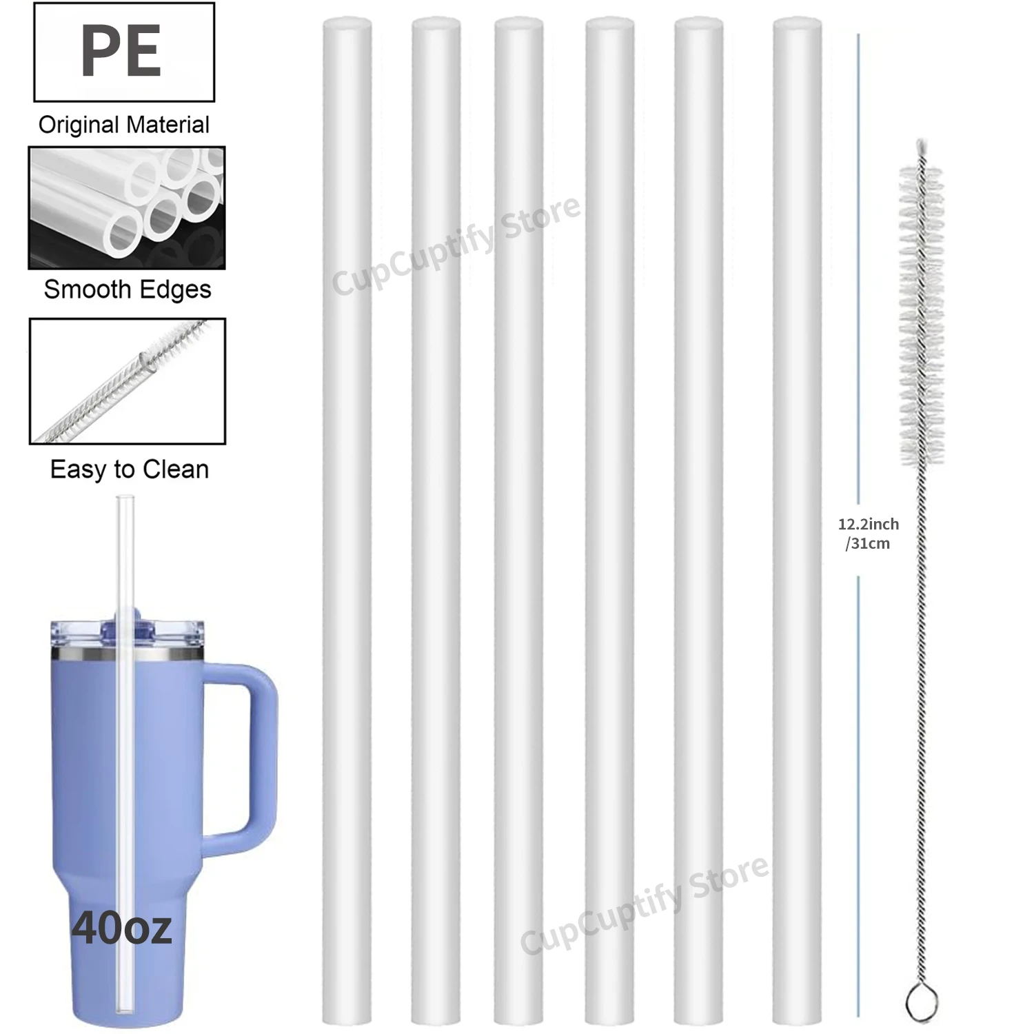 6-teiliges Ersatz-Strohhalm, 30,5 cm, wiederverwendbar, PE + Silikonmaterial mit Reinigungsbürste, kompatibel mit Stanley 40oz Cup Tumbler Cup