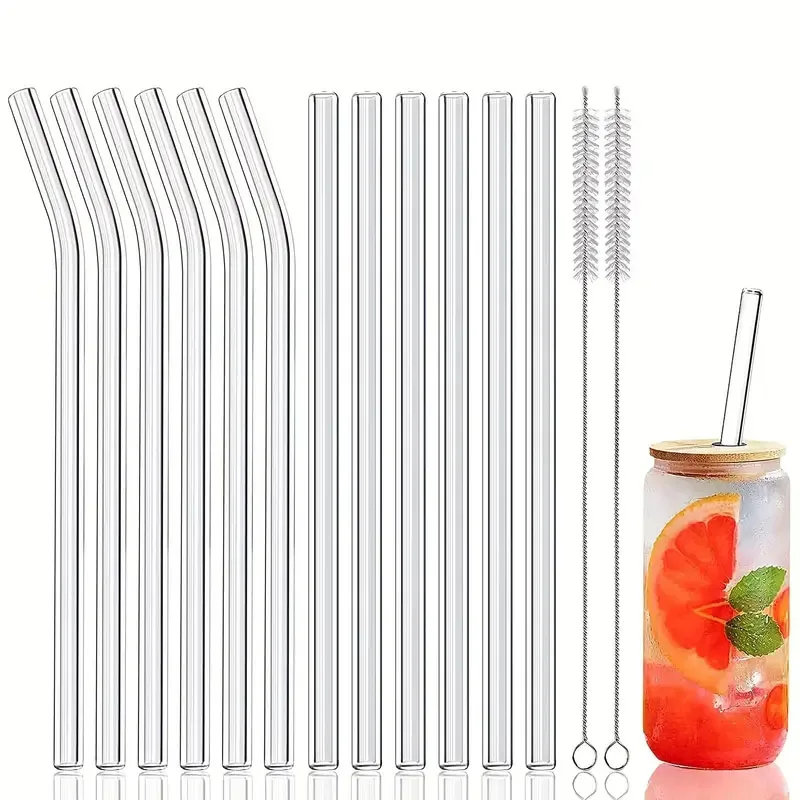 4/6/8/10 Stück transparente Glasstrohhalme Saft Milch Kaffee Cola Strohhalme kreative hochtemperaturbeständige Glasstrohhalme
