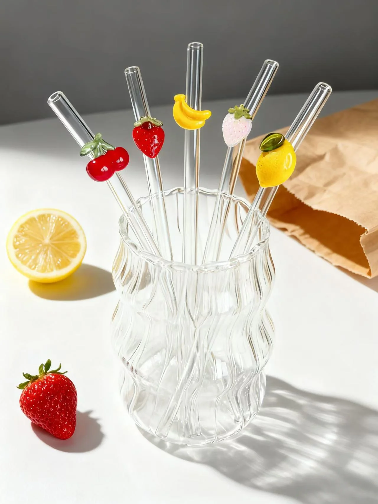 1/5-teiliges flexibles Glas-Strohhalm-Set, inklusive Reinigungsbürste, ideal für Milchshakes und Sodas, perfektes Geschenk für Geburtstage und Hochzeiten