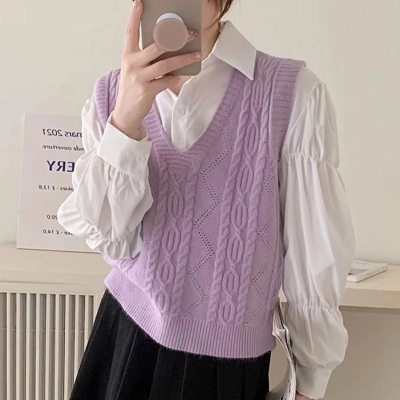 Pullover Weste Frauen Retro Harajuku College Stil Studenten Sleeveless V-ausschnitt Mädchen Süße Elegante Freizeit Täglich Strickte Weibliche Chic