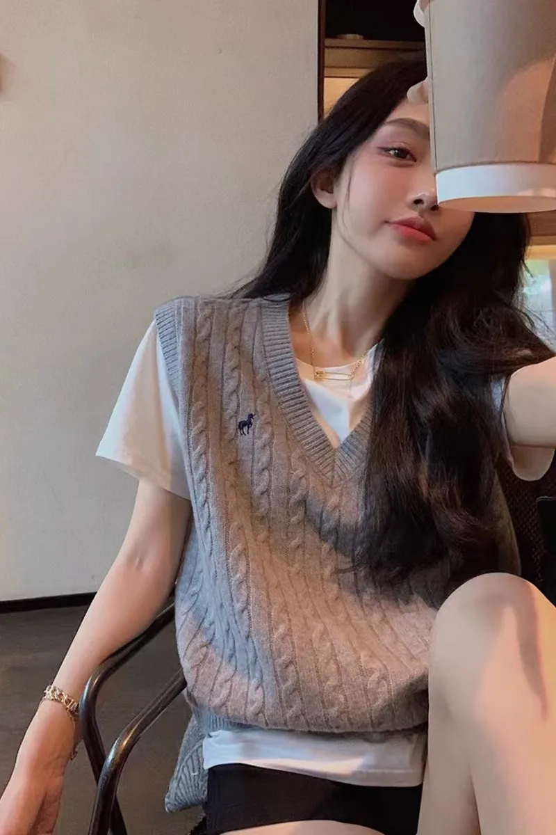 Strickwesten für Frauen, kurze Kleidung, leicht zu arbeiten, im Angebot, Pullover, koreanischer Stil, Kleidung, Weste, neue Strickwaren, Y2k-rote Damenpullover