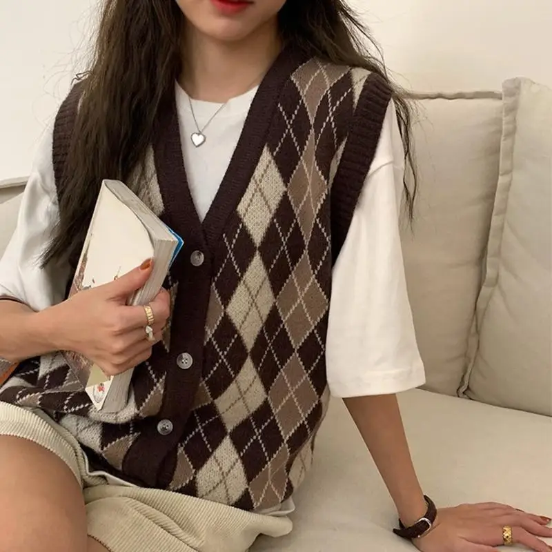 Weste Damen Frühjahr und Herbst Weste gestrickt 2024 neuen Stil Damen pullover Leibchen Retro Farbe Weste V-Ausschnitt lockeres Außen outfit