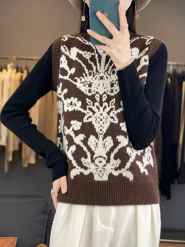 Fashionable Retro Vest Women's Autumn and Winter Outerwear New Loose V-neck Sleeveless Sweater Knitted Sweater Sleeveless Vest