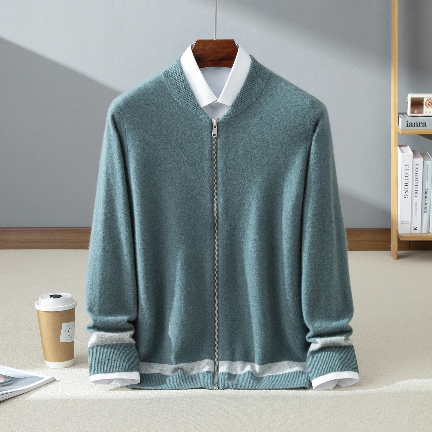 Hochwertiger 100% Kaschmir Herren Reißverschluss-Cardigan 12-Nadel-Strickpullover Luxus Rundhals-Pullover Locker Geschnittene Oberteile Baseball-Jacke