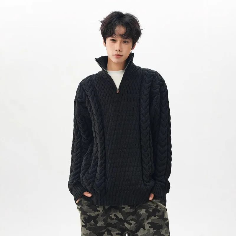 Lässiger gestreifter Herrenpullover für Herbst und Winter, farbblockierter Rundhalsausschnitt, bestickte Herren-Pullover in europäischer Größe, gestrickt