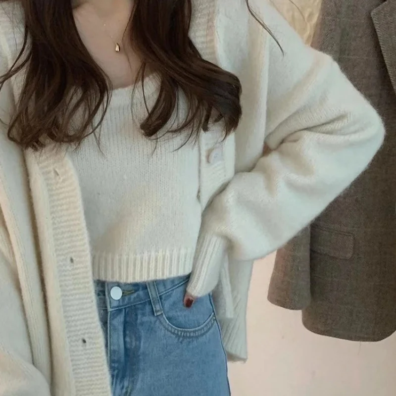 Warmer Damenpullover mit V-Ausschnitt, Strickpullover, koreanische Mode, langärmelig, lockeres, dünnes Innenoberteil, Herbst und Winter, neu