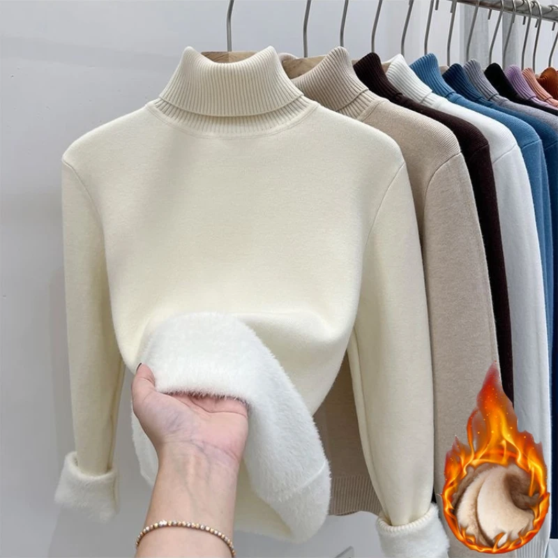Pullover Für Frauen Winter Verdicken Rollkragen Schlank Stricken Pullover Neue Warme Plüsch Samt Gefüttert Strickwaren Jumper Tops Casual Poleras