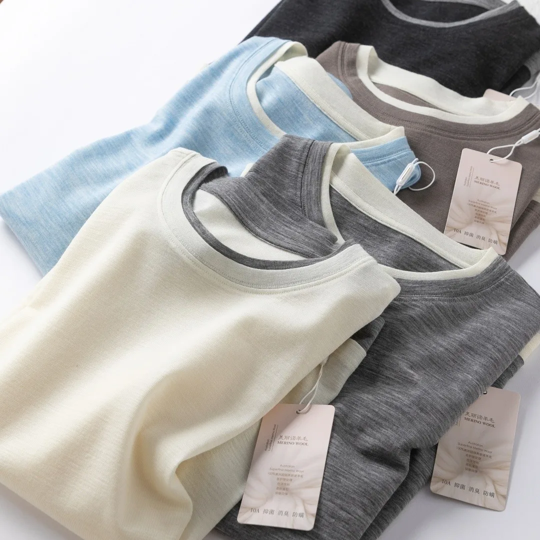Damen-Oberteile, Kleidung, 100 % Merinowolle, Frühling, Herbst, Winter, First-Line, bereit zum Tragen, nahtlos gestrickter Kurzarmpullover mit Rundhalsausschnitt