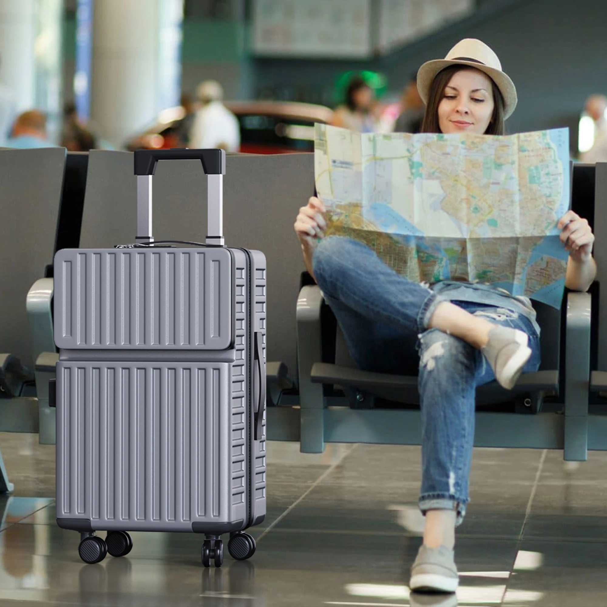 Damen Trolley-Taschen-Set, großes Fassungsvermögen, 20-Zoll-Trolley-Taschen, Spinnerräder, wasserdichte Kurztrip-Tasche, Boarding-Handgepäck-Handtasche