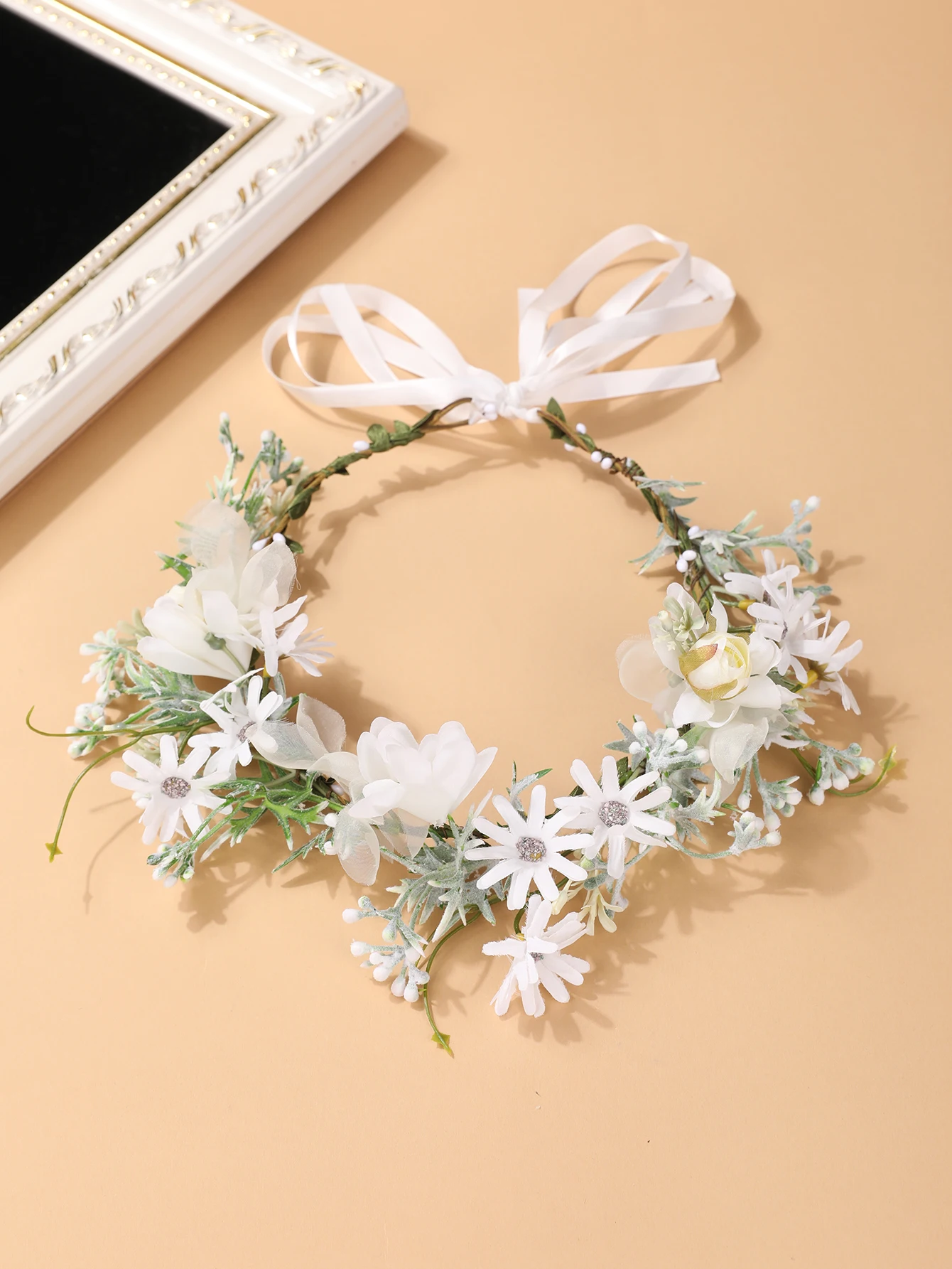 Handgefertigter Kranz mit reiner weißer Blume, Willkommenskrone für Hochzeiten im Waldstil, Foto-Shooting-Zubehör im Feenstil