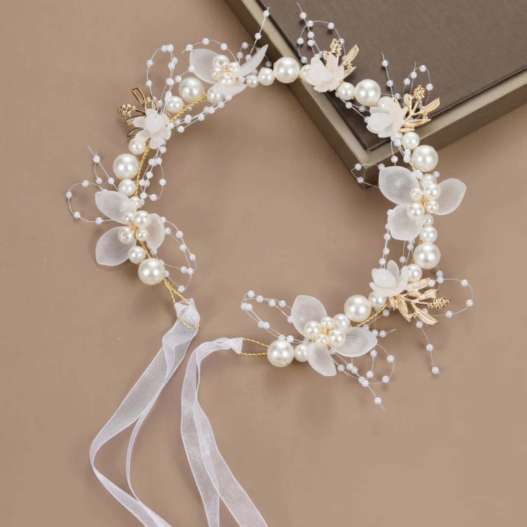 One Fairy Imitationsperle, süßer Blumenkranz, Stirnband, Kopfbedeckung für Damen, mit Party, Hochzeit, Geburtstag, Prinzessin, Haarschmuck