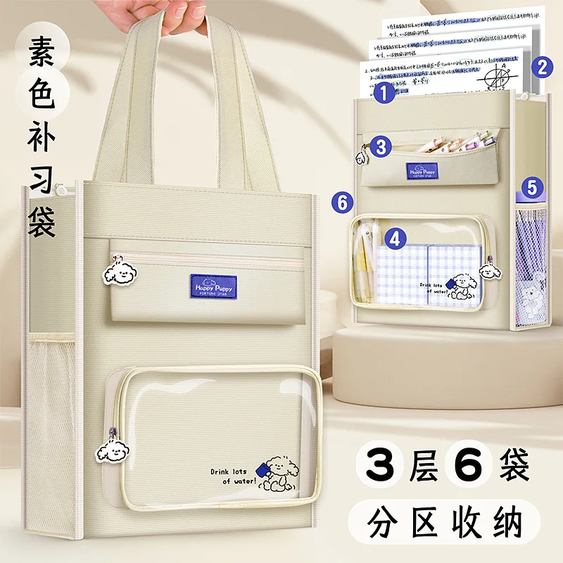 Cartoon Sieben Schichten Leinwand Handtasche Große Kapazität Tragbare Nachhilfe Tasche Multifunktionale Dokument Organizer Geschenk