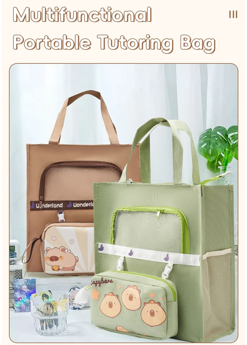 Capybara Nachhilfe Tasche Kawaii Schule Student der Leinwand Lagerung Datei Tasche Cartoon Druck Große Kapazität Nachhilfe Koreanische Schreibwaren