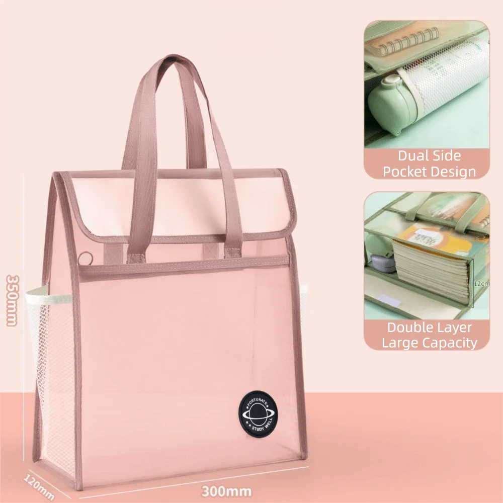 Verdicktes Material Mesh Hand Büchertasche Mesh Design Doppelschicht Lehrbuch Aufbewahrungstasche Große Kapazität Tragbarer Griff