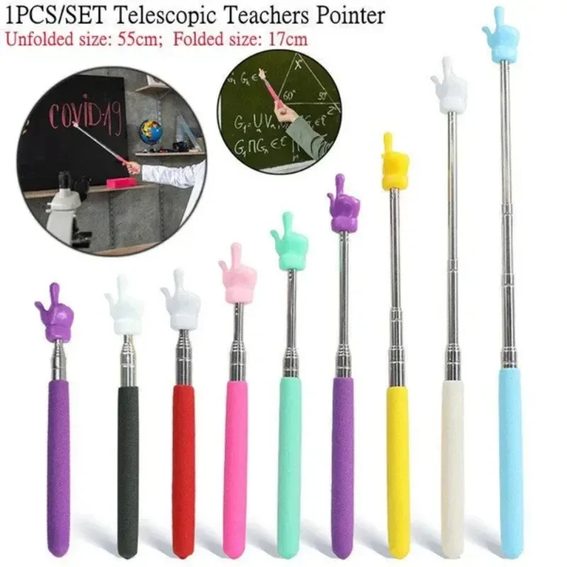 Langlebiger Lehrzeiger aus Edelstahl, Teleskopstange, Finger-Design, Finger-Lesestöcke, Whiteboard, Handzeiger, Lehrer