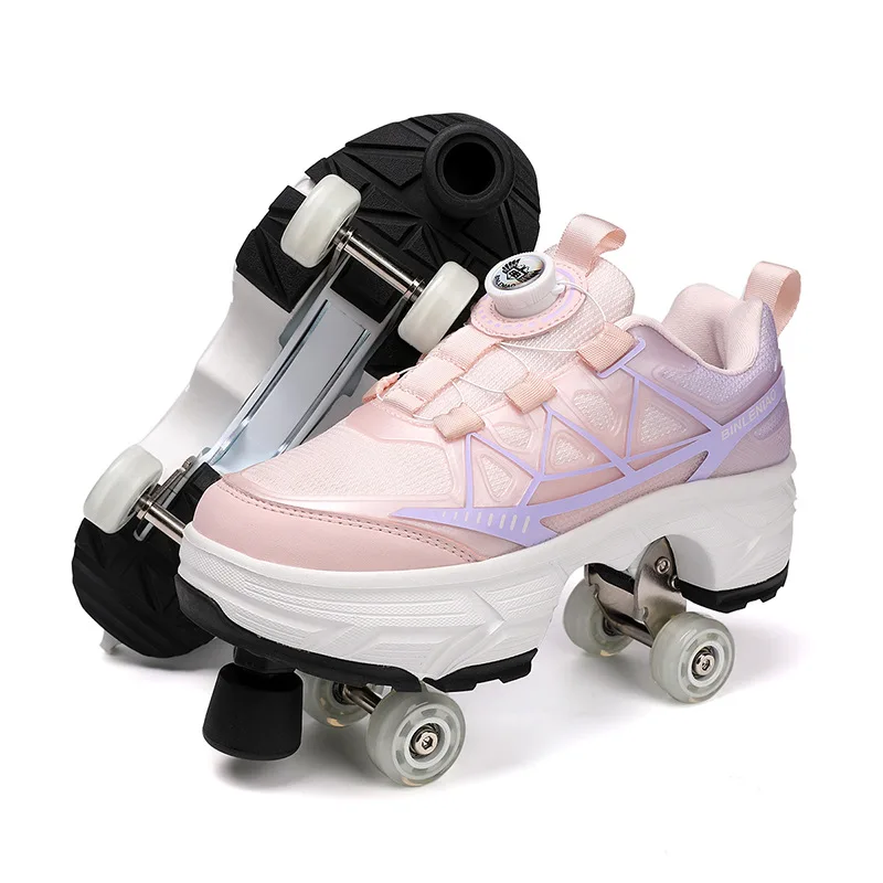 Unisex-Rollschuhe mit vier Rädern, automatisch einziehbare High-Top-Sportschuhe mit Rollen, Skate-Sportschuhe für Damen mit doppeltem Verwendungszweck