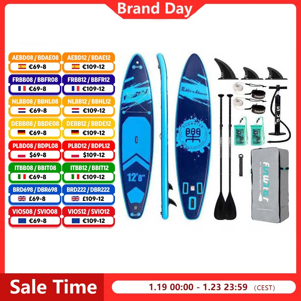 FunWater Stand Up Paddle Board, große Größe, 385 x 85 x 15 cm, aufblasbares Paddelbrett, Surfbrett, Surf-Sup-Board, rutschfestes Paddelbrett