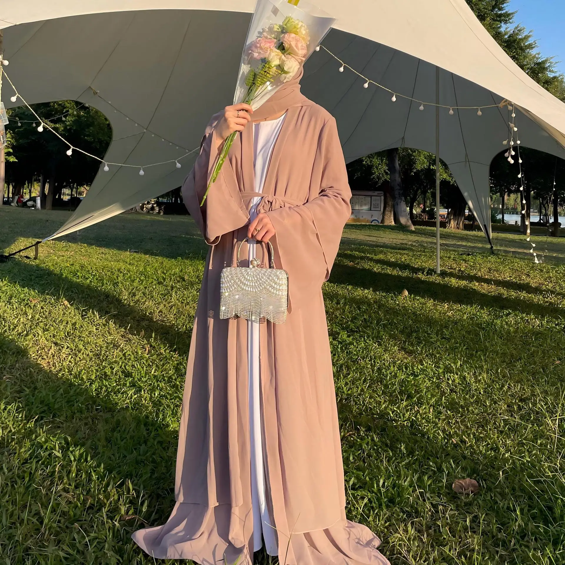 2026 Frühling Sommer Damen Chiffon Open-Front Cardigan & Einfarbiges Maxikleid Passendes Set Outfit Kleidung