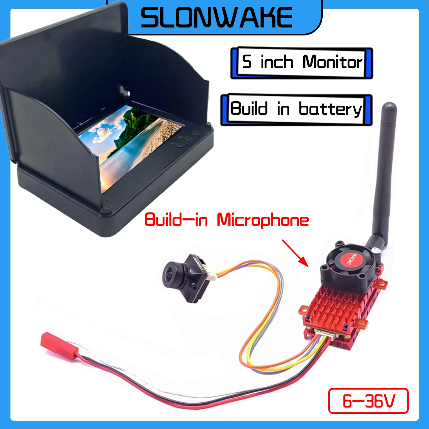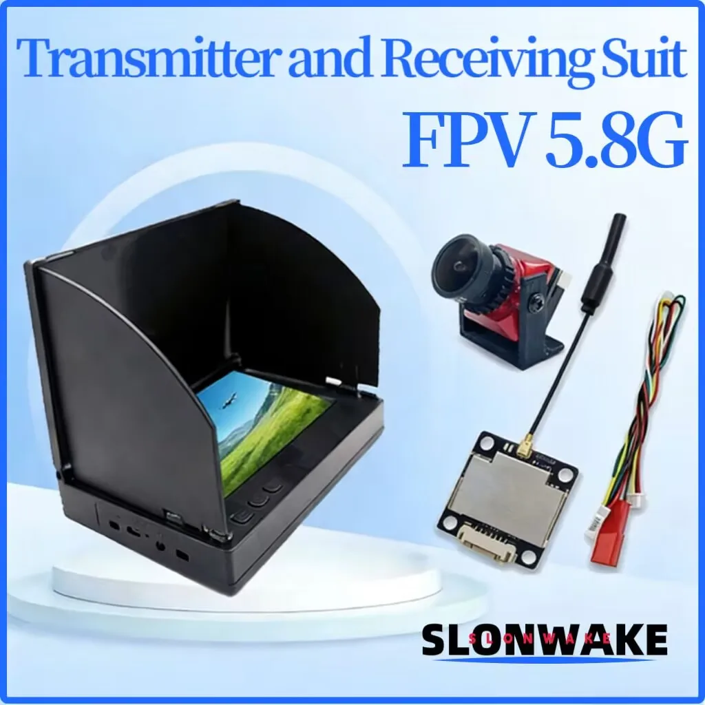 SLONWAKE FPV-Anzug mit 5,8G 600mW VTX-Sender, 1500TVL-Kamera und 5-Zoll-Empfangsbildschirm. Für RC FPV Starrflügler-Drohnen