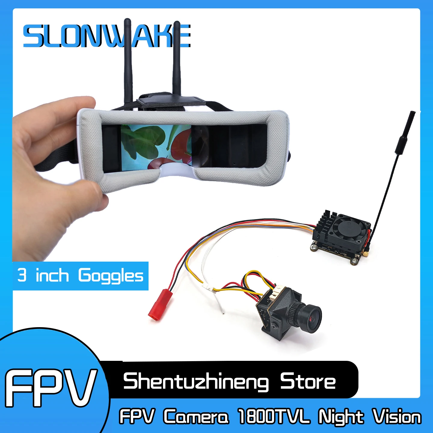 SLONWAKE 5,8G 48CH 4,2W VTX Sender mit 1200TVL FPV-Kamera und VR009 FPV-Brille 3 Zoll 480*320px Video-Headset HD-Brille
