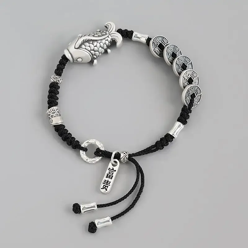 Wächter-Armband, viel Glück, Koi, fünf Kaiser, Geld, Jungen, sicher und reichhaltig, Kupfer, Geld, Glück, Reichtum, Handseil, Mädchen, Silberschmuck