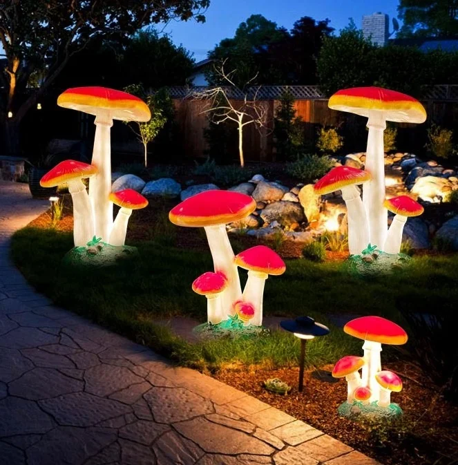 Wasserdichte Lebensgroße Simulations-Pilz-Beleuchtungsstatue aus Fiberglas für Weihnachten, Garten und Hofdekoration