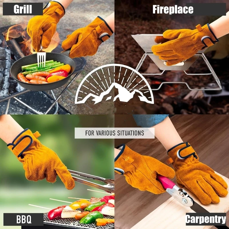Hitzebeständige Handschuhe, rutschfeste Lagerfeuerhandschuhe, Angelhandschuhe, Grillhandschuhe für die Lagerhandhabung, Fangen, Reinigen, Grillen, Jagd
