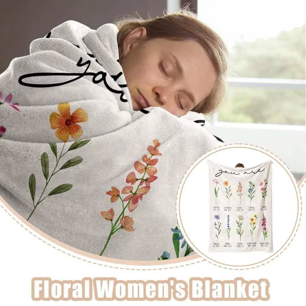 Florale Damendecke, 130 x 150 cm, Flanell-Überwurf, Schal, inspirierendes Geschenk für Frauen, Geburtstagsgeschenk, weiche, bequeme Heimdekoration