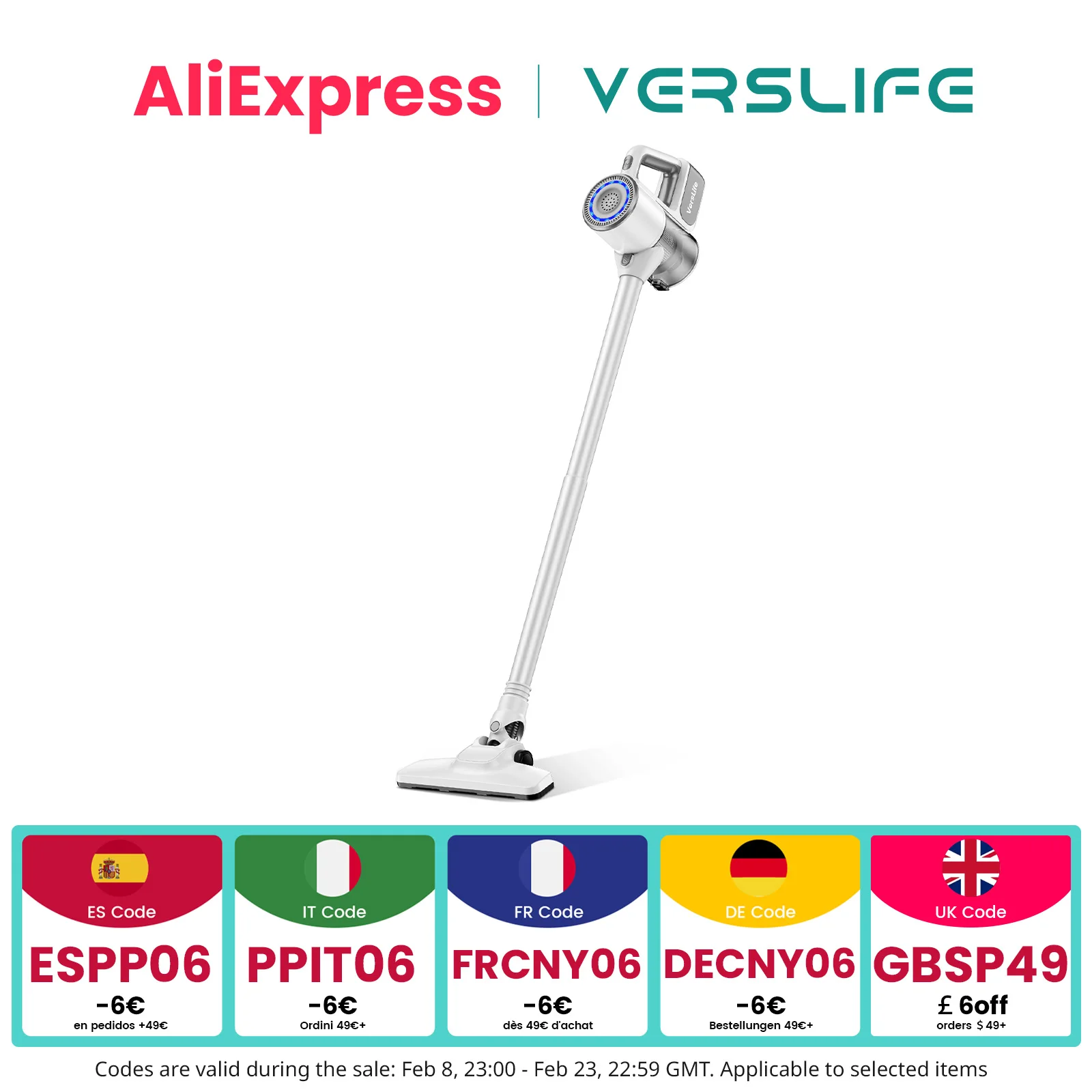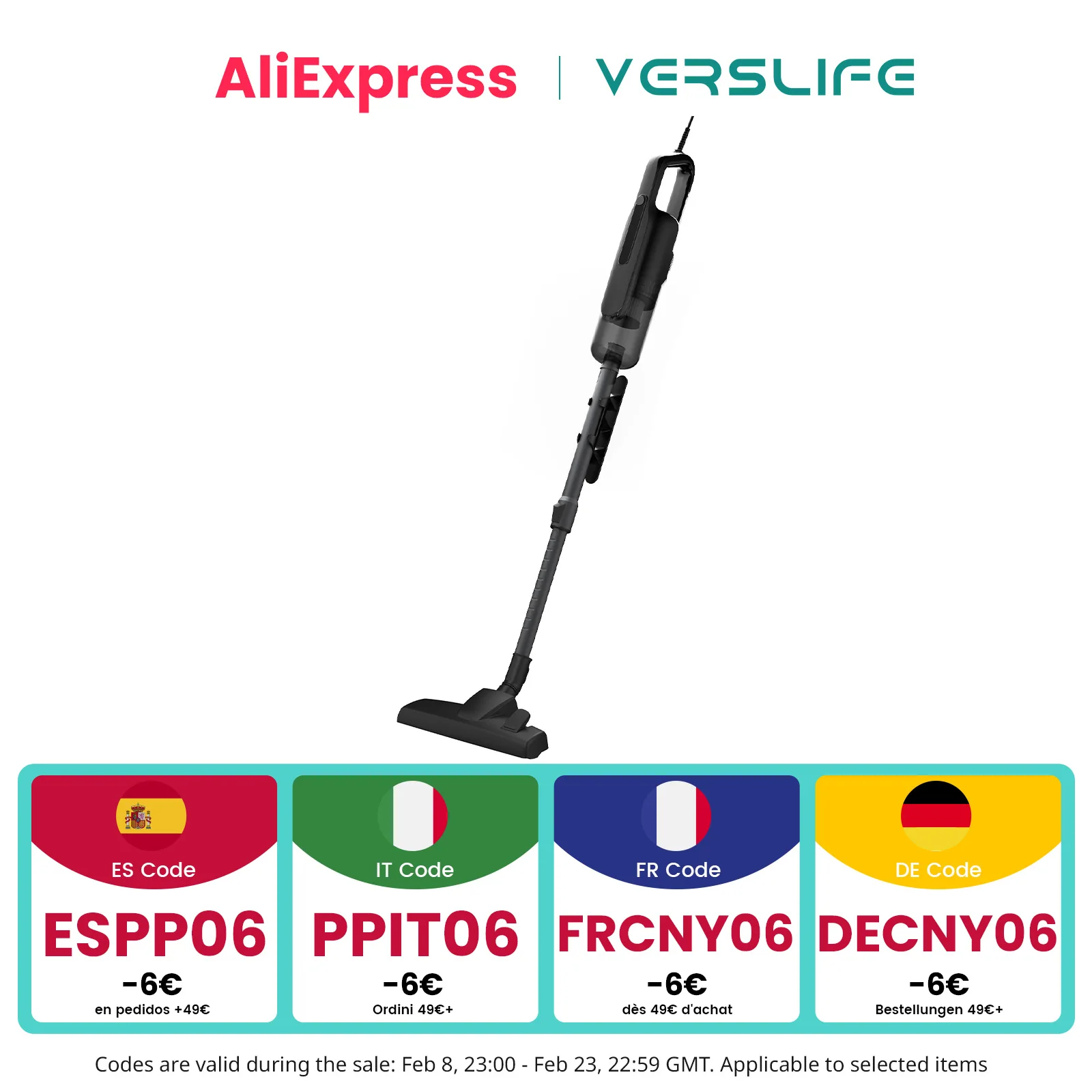 Verslife C8Pro Kabelgebundener Staubsauger 30Kpa, Staubsauger mit 5m Kabel, Leistungsstark und Leicht, Anti-Verwicklung-Design und Teleskoprohr, für Tierhaare, Teppiche und Böden
