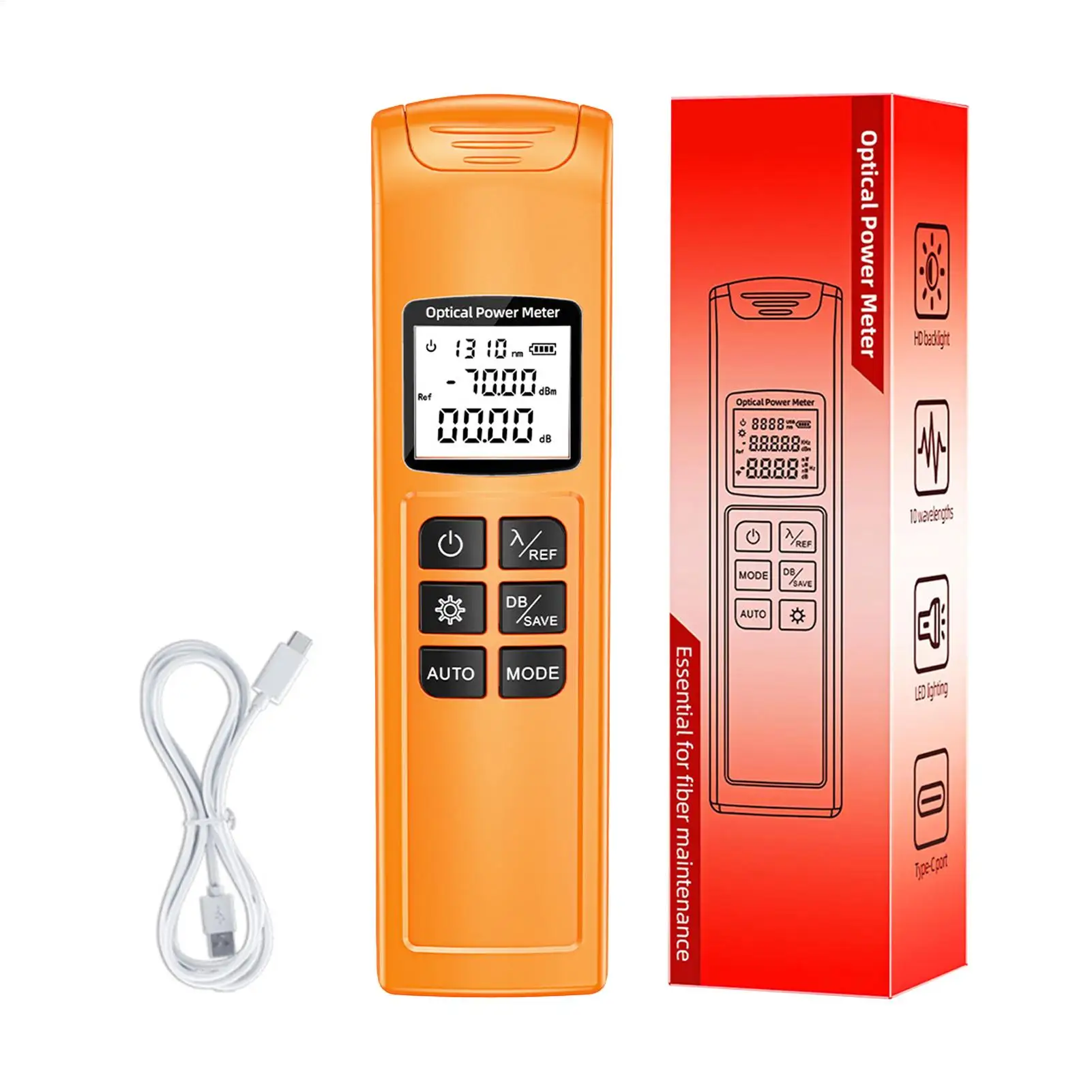 Fasertester, wiederaufladbarer optischer Leistungsmesser mit LED-Licht und Kabeltest für SC/FC/ST, FTTH, CATV, Rechenzentren