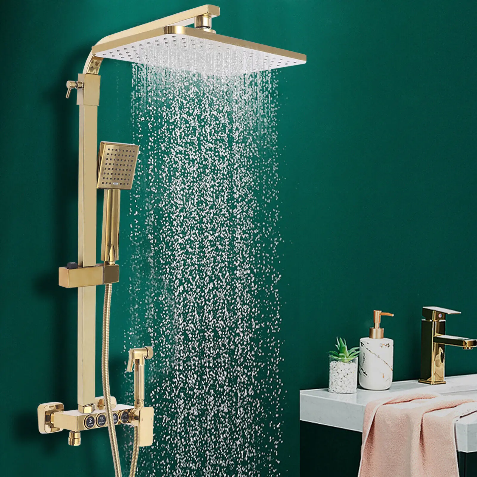 Modernes goldenes Badezimmerarmaturen-Set, Regenduschkopf mit verstellbarer Höhe und Spritzpistole