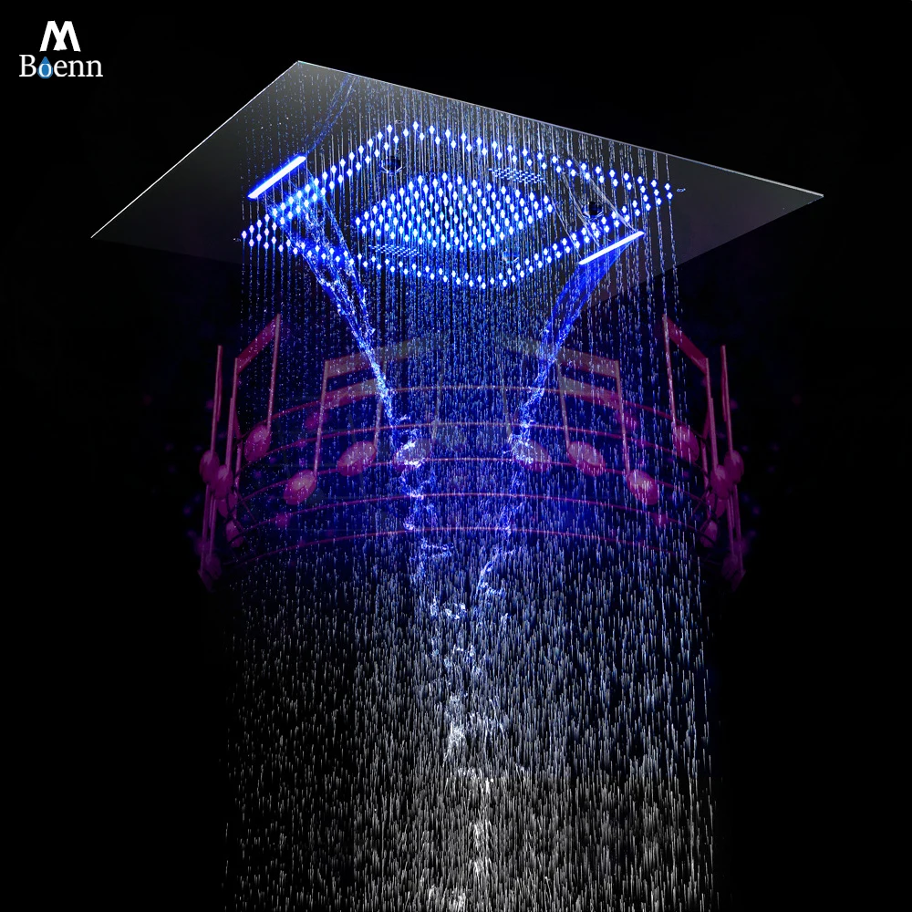 M Boenn 23 × 31 Zoll Emotional Appeal Musik-LED-Duschkopf, Regenbadezimmer, eingebettete Decke, großes Duschpaneel, Chrom und Schwarz