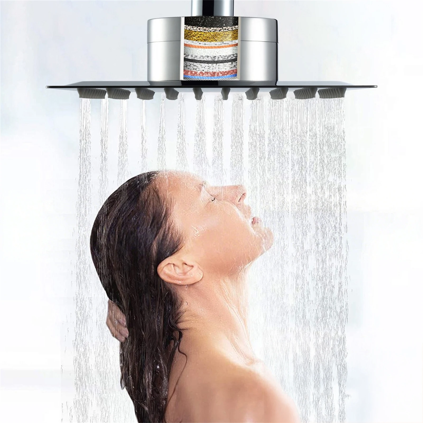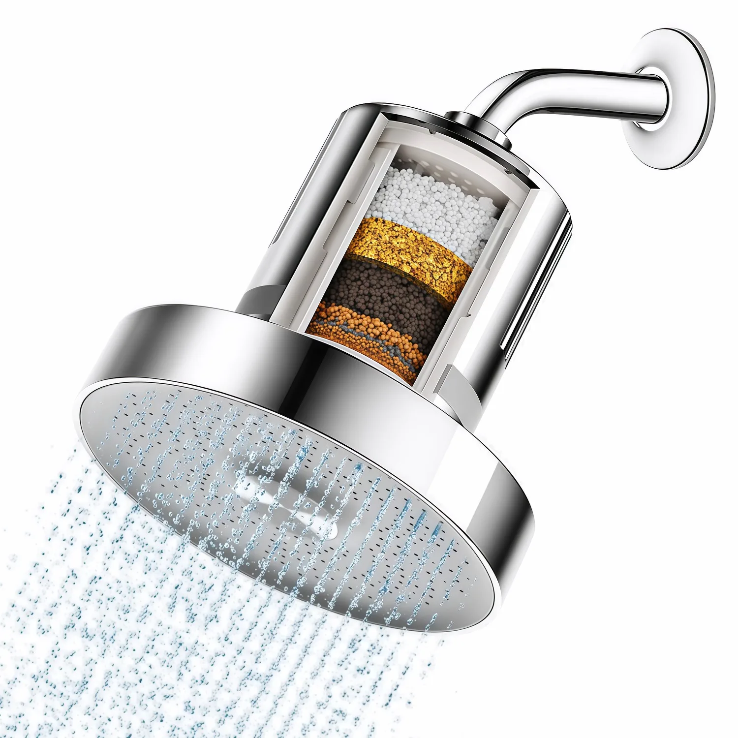 Hochdruck-Duschkopf mit Filter, leistungsstarker Hartwasserenthärter, verstopfungssichere Düsen, wassersparender Regenduschkopf