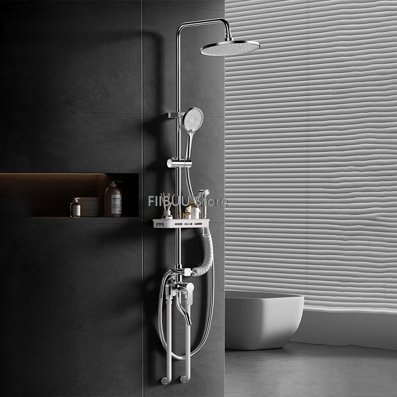 Multifunktionales Duschsystem mit Heiß- und Kaltwasser, Knopfschalter, Wandmontierte Duschgarnitur, Langlebige Badezimmerausstattung