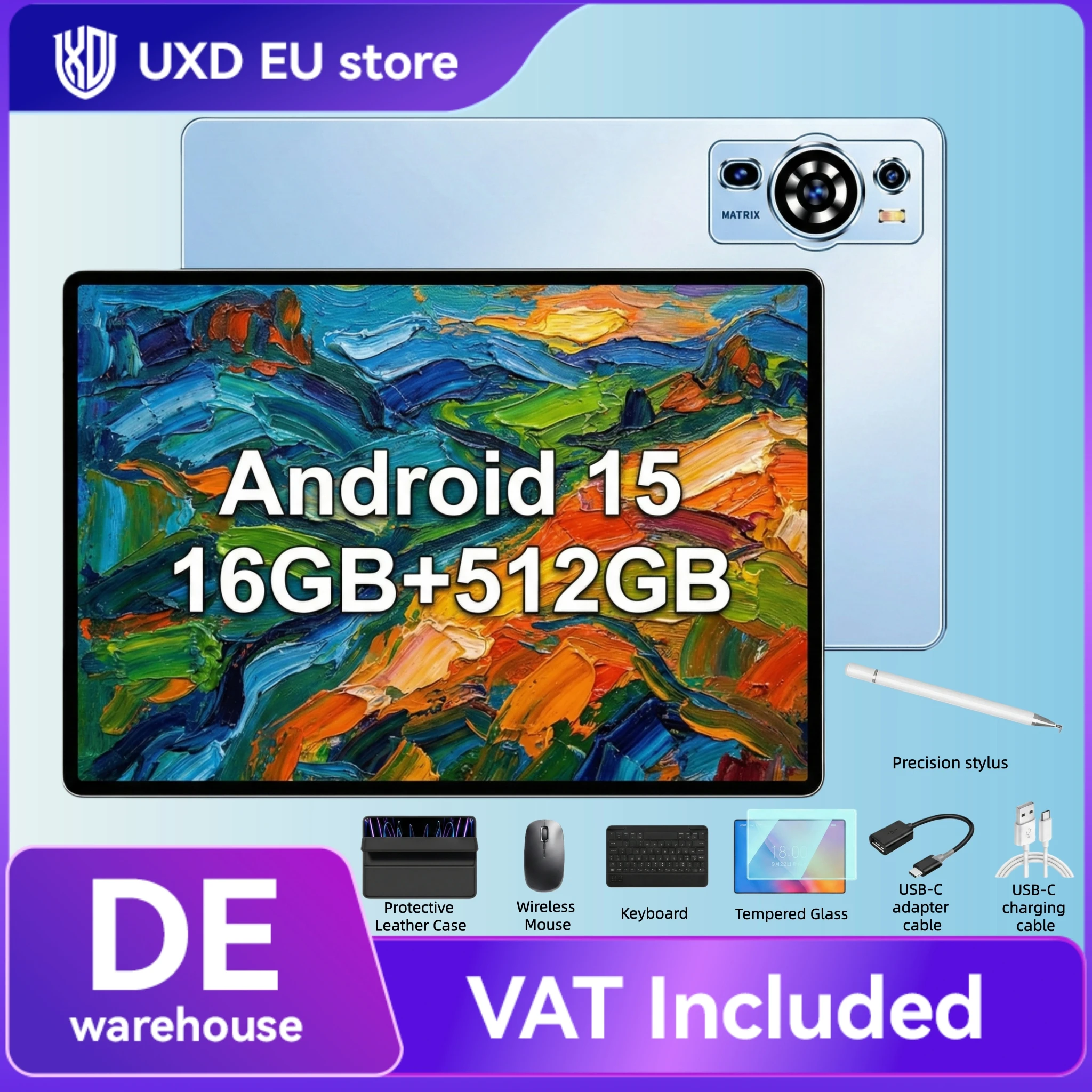 UXD Android15 Tablet 10,1-Zoll-IPS 16GB RAM/512GB ROM+1TB Erweiterbarer 4G LTE/WiFi Achtkernprozessor 6000-mAh KomplettesZubehör