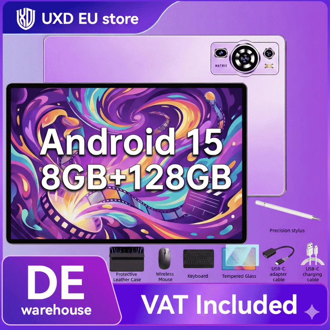 UXD Android15 Tablet 10,1-Zoll-IPS 8GB RAM/128GB ROM+1TB Erweiterbarer 4G LTE/WiFi Achtkernprozessor 6000-mAh KomplettesZubehör