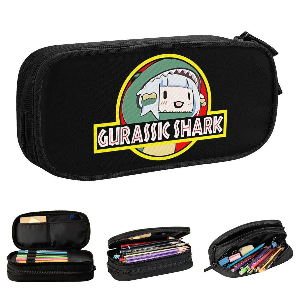 Niedliche Gawr Gura Gurassic Shark Saba Sameko Federmäppchen, Bleistiftbox, Stiftbox für Kinder, große Aufbewahrungstaschen, Schule, Reißverschluss, Schreibwaren