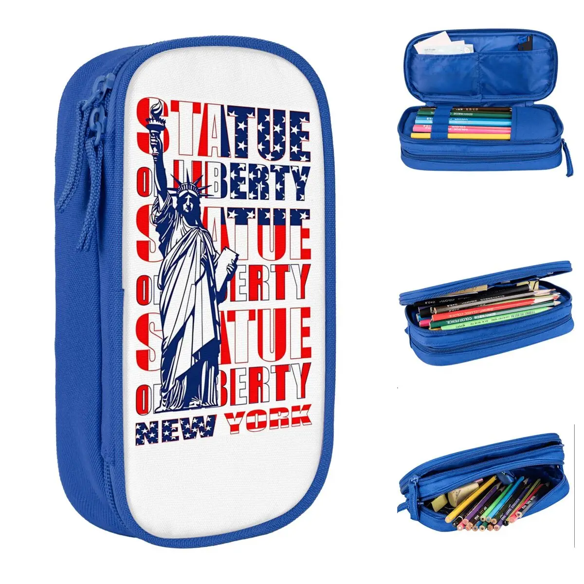 Federmäppchen mit Freiheitsstatue, schöne Stifttasche für Mädchen und Jungen, große Aufbewahrung, Büro-Federmäppchen mit Reißverschluss