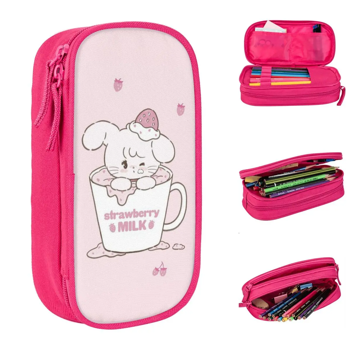 Mikkos Erdbeere MILK Federmäppchen Neue Stifthaltertasche Mädchen Jungen Große Kapazität Schulbedarf Reißverschluss Federmäppchen