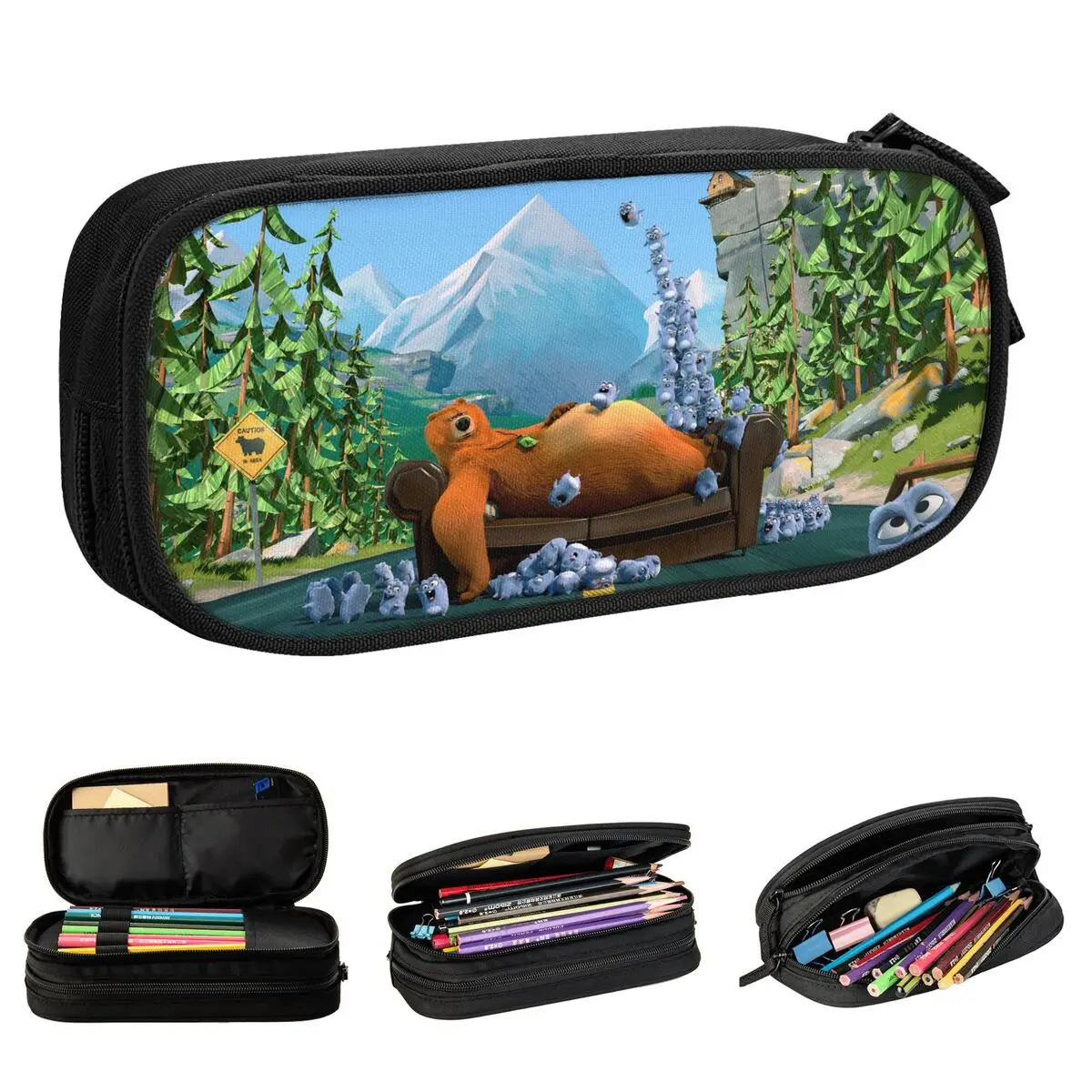 Schöne Grizzy und die Lemminge Federmäppchen Elchkomödie Animation Federmäppchen Stift für Schüler Große Kapazität Taschen Studenten Schule
