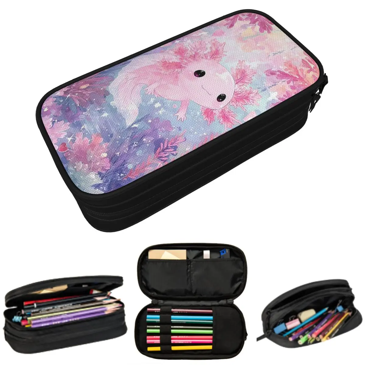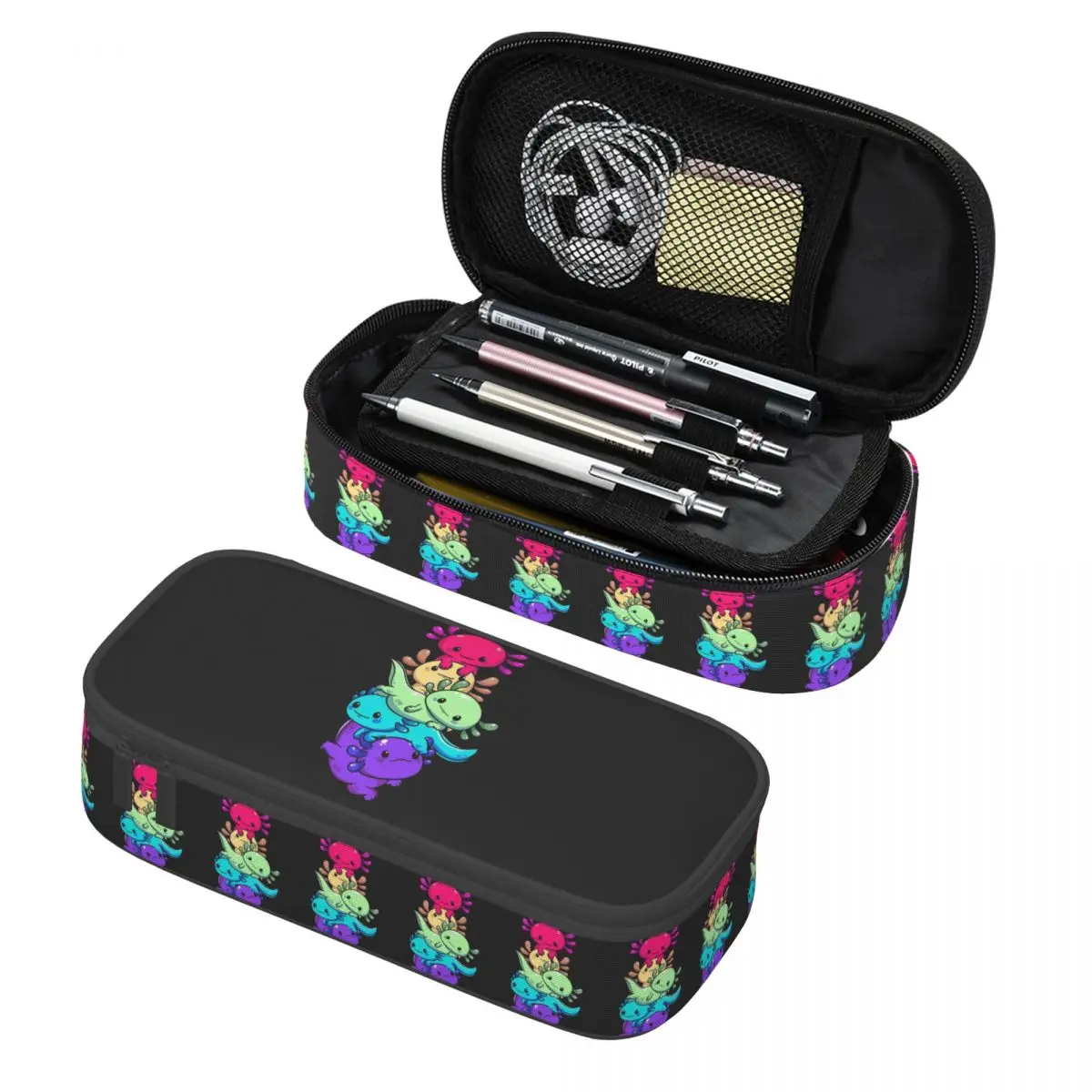 Buntes Axolotl-Federmäppchen, zusammengestapelt, Stifthalter, Aufbewahrung von Schreibwaren, großes Fassungsvermögen, Stiftbox, Bleistiftbeutel für Kinder