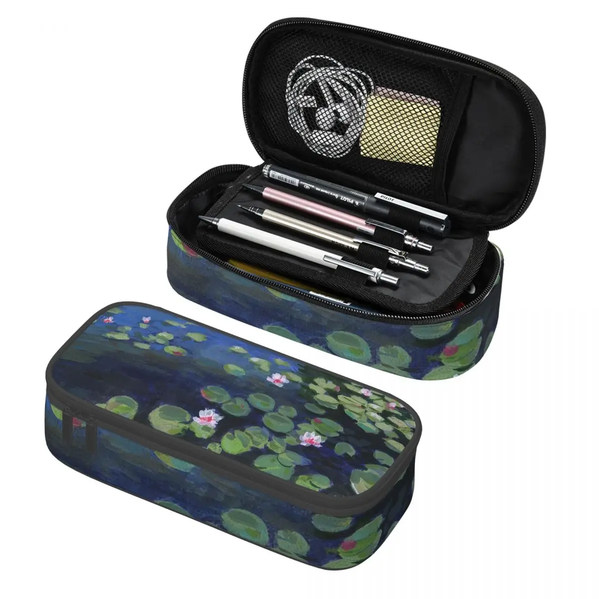 Impressionistisches Wasserschilf-Motiv, dunkelblau, Federmäppchen, Stifthalter, Aufbewahrung von Schreibwaren, große Aufbewahrungsbox für Stifte, Bleistiftbeutel für Kinder