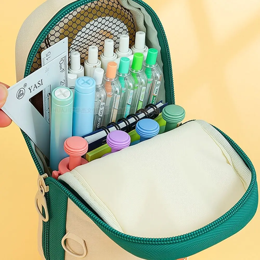Mehrschichtiger Studentenrucksack, Federmäppchen, tragbar, Cartoon-Reißverschluss, Federmäppchen, vertikale Tasche, großes Fassungsvermögen