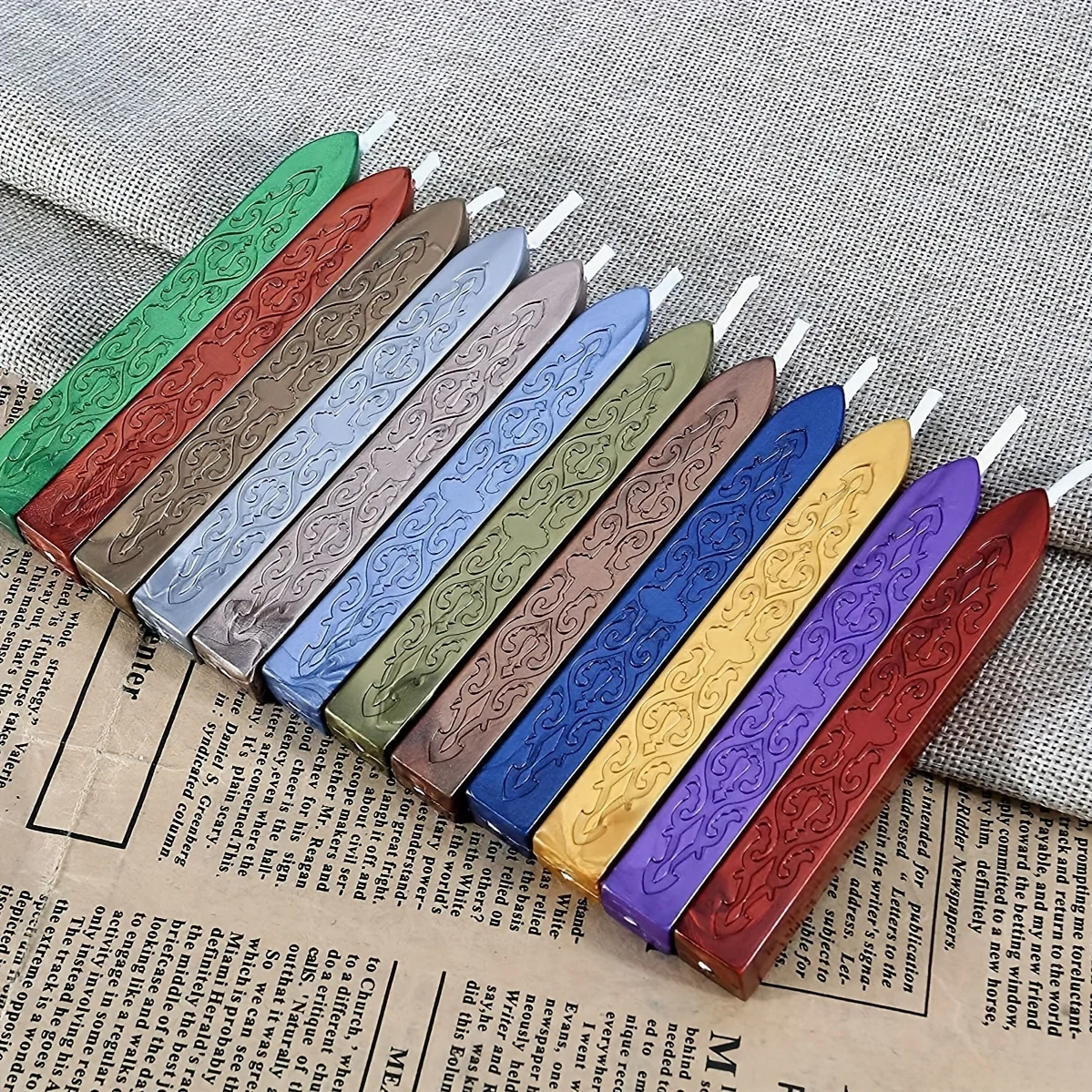 12 Stück/Beutel metallische Versiegelungswachsstifte in verschiedenen Farben mit Dochten für Wachssiegelstempel, für Hochzeitseinladungen, Briefumschläge