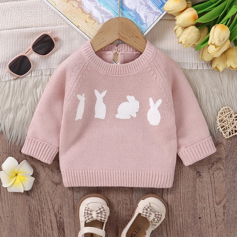 Neue Herbst Winter Baby Pullover 0-3T Cartoon Kaninchen Oansatz Infant Gestrickte Pullover Kleinkind Baby Kinder Lose Warme stricken Tops