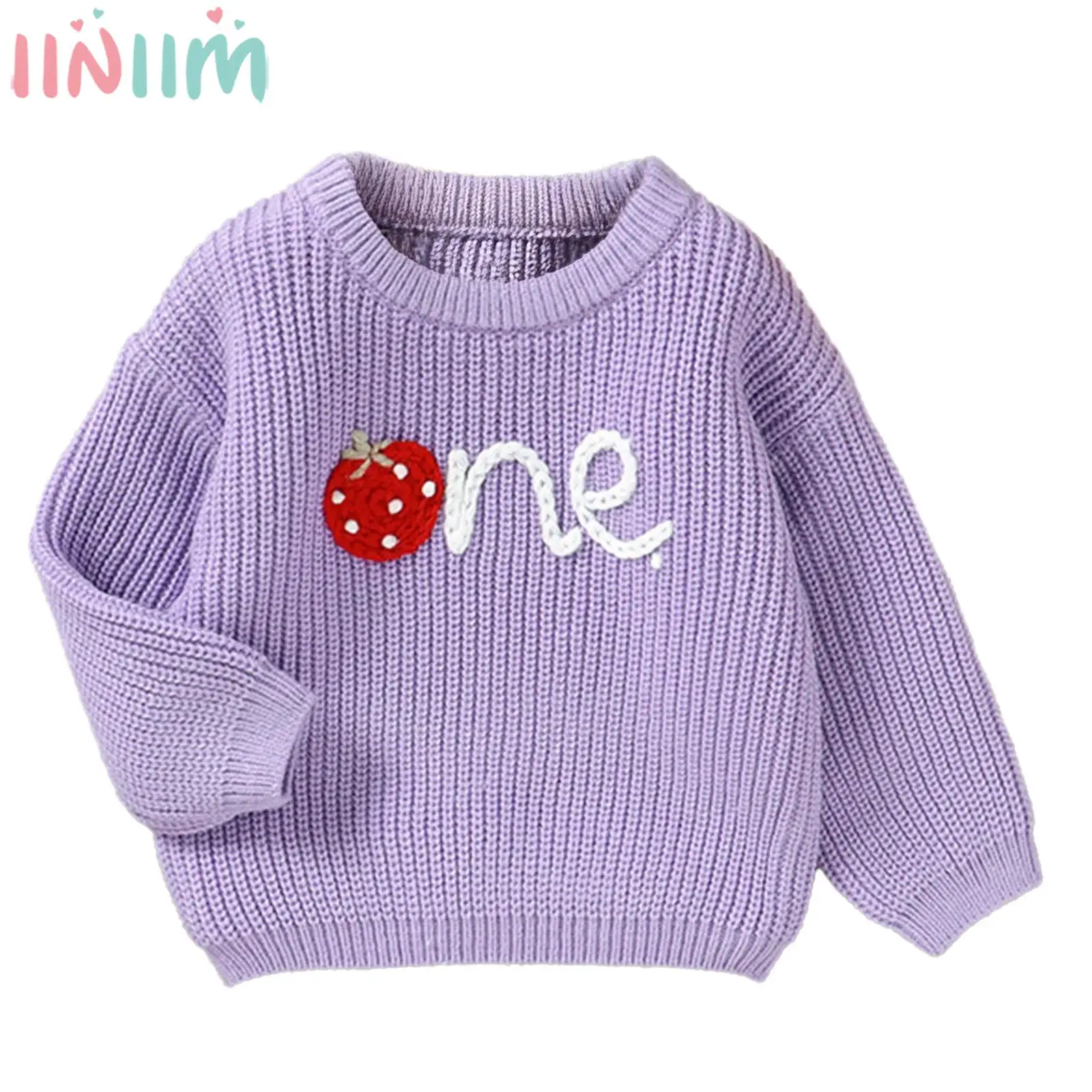 Baby-Pullover für Jungen und Mädchen zum 1. Geburtstag, langärmelig, bestickt, gestrickt, Pullover, Oberteile, Sweatshirt, Frühling und Herbst, süße, niedliche Kleidung