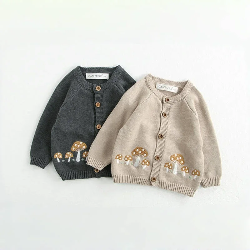 Neugeborenen Baumwolle Strickjacke Baby Langarm Pilz Stickerei Pullover Herbst Knopf Vorne Top