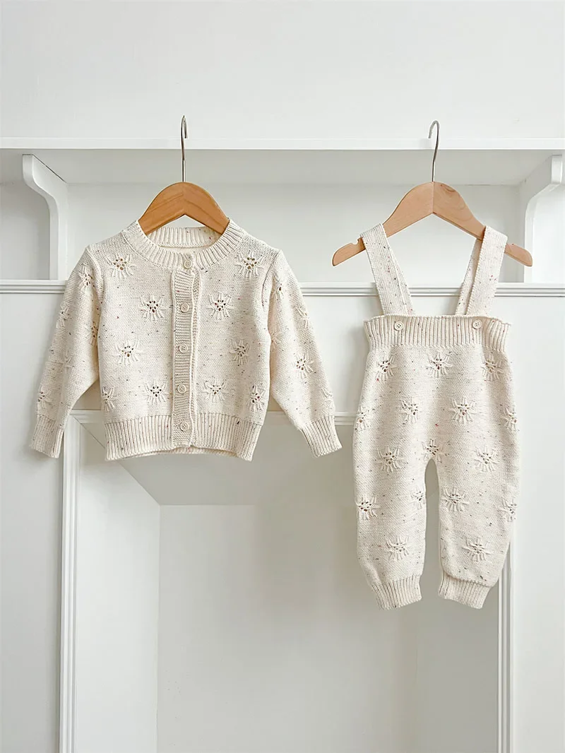 Baby-Strickjacke 2025, Herbst-Baby-Mädchen, handgefertigter, gestrickter Baumwollpullover mit Blumenmuster, Alem