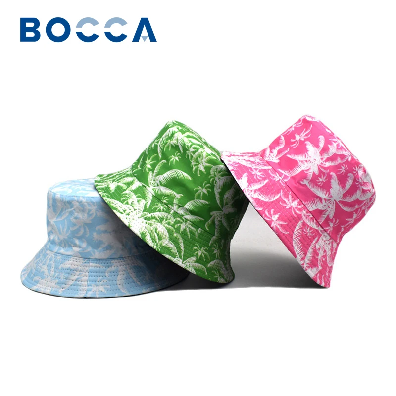 Bocca Fischerhut mit Kokospalmen-Aufdruck, Panama-Fischerhut, für Herren und Damen, Unisex, wendbar, Hip-Hop, Hawaii, Strandstil, Sommermütze